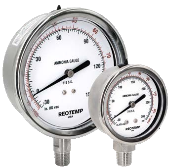 我们的工业用不锈钢制冷压力表有 2.5 英寸和 4 英寸两种度盘尺寸。对于从事供暖、通风、空调等工作的技术人员来说,这些压力表是必不可少的。