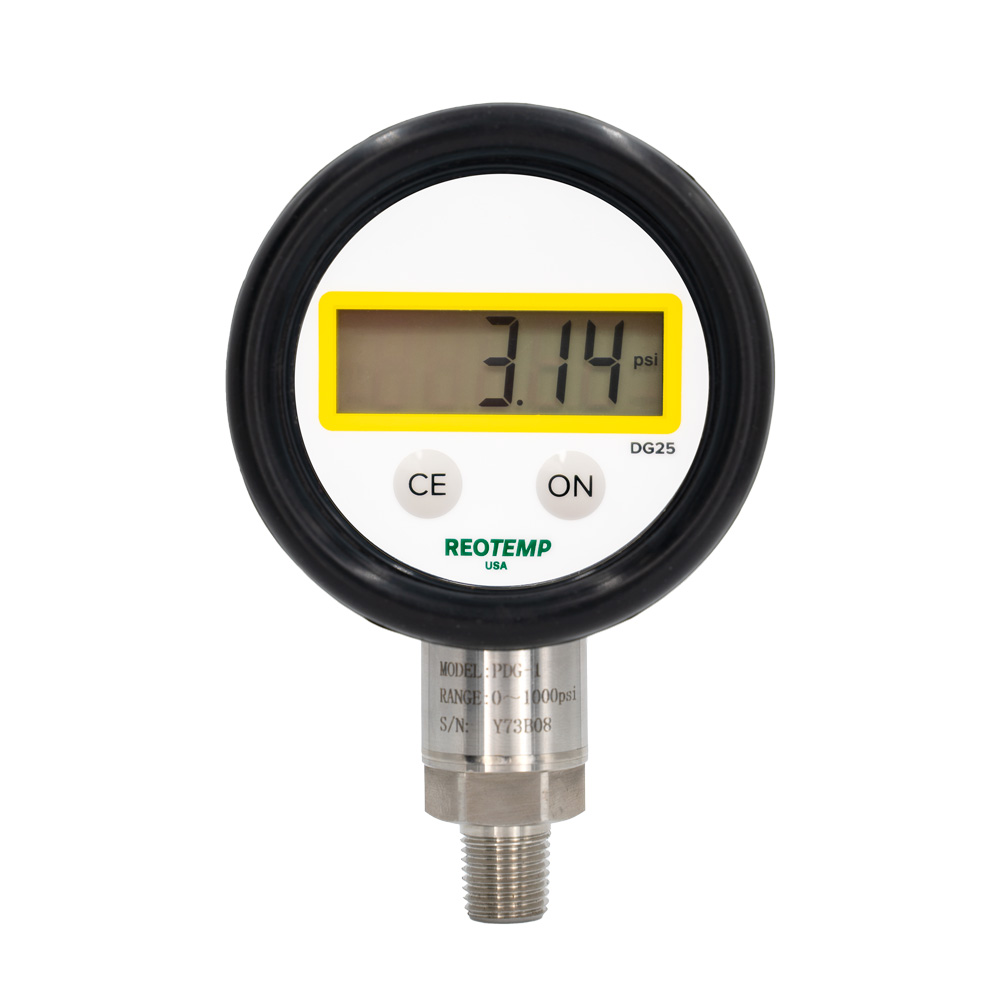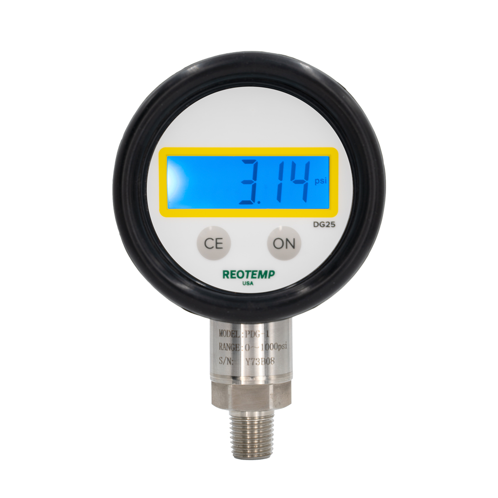Reotemp 的DG25系列压力表将压力表的低维护/最小设置与数字显示屏的读数简便性结合在一起。该压力表可更改测量单位、最大压力、用于光线不足地区的背光以及橡胶保护套。