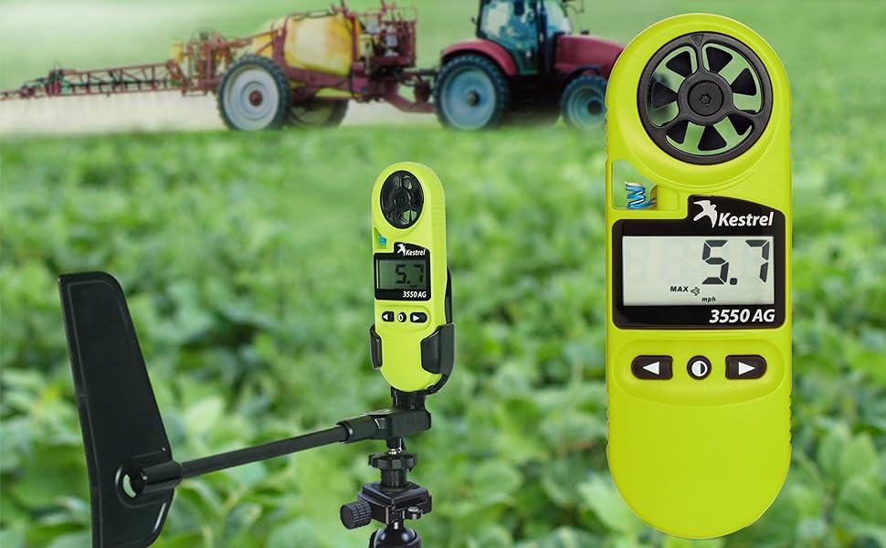 Kestrel 3550AG 是您值得信赖的喷洒和耕作气象指南,它袖珍、坚固、防水、经济实惠、易于使用,并配备了用于监测和报告的无线数据检索功能。