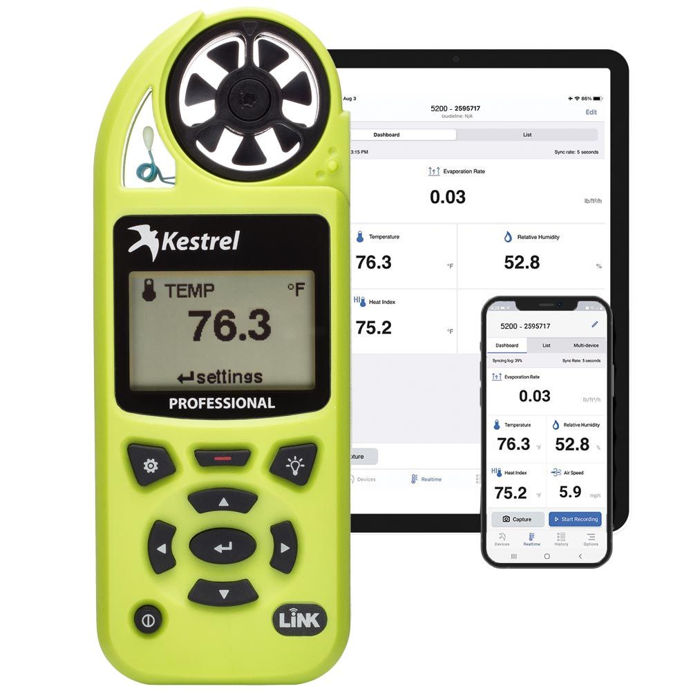 无论您是浇筑混凝土、平衡暖通空调系统,还是监测工作现场条件,Kestrel 5200 都能通过集成的专业计算功能为您省去计算和猜测的麻烦。不再需要猜测或使用数英里外的不准确数据。