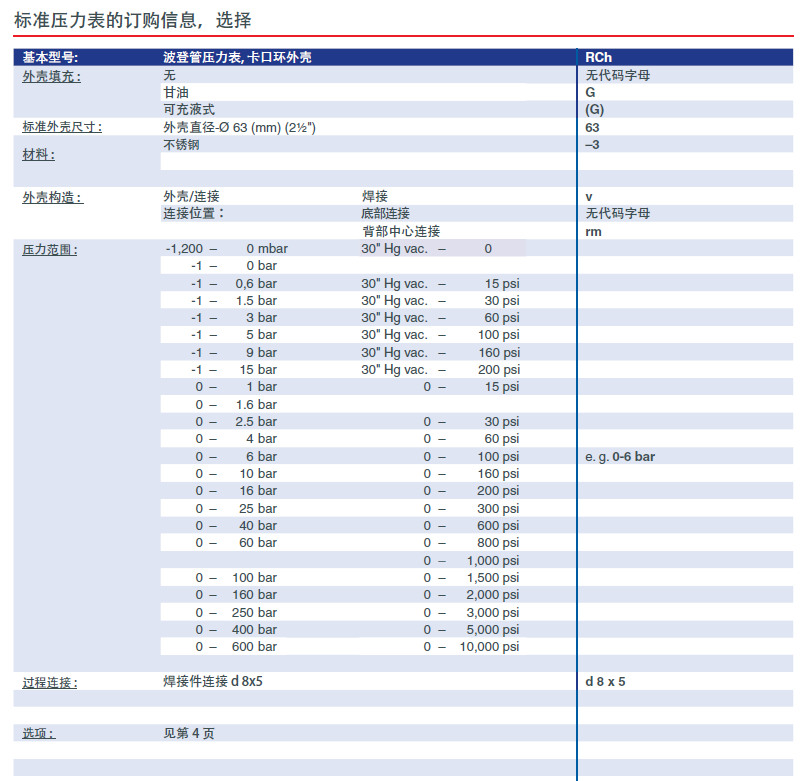 常规功能、测量功能 (载荷极限/温度限制) 和标准压力范围/刻度