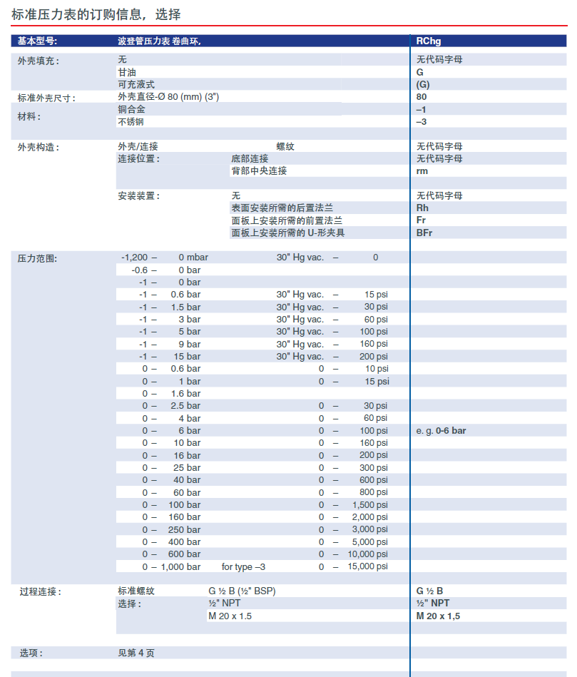型号-3:0-0.6 bar (0-10 psi) 至0-1,000 bar (0-15,000 psi)